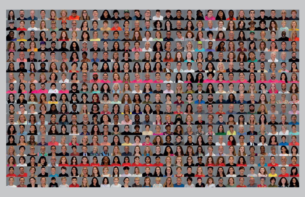 Each Scrollathon participant will create two scrolls made from two strips of fabric that are tightly rolled and secured with a pin. The first scroll is for the participant to keep, while the second scroll is used to create a larger artwork. After the workshops, scrolls from the whole community are brought together into a wooden frame and affixed into place. Participants’ photographic portraits are later incorporated into a photo mural and a souvenir brochure. The meditative nature of working with their hands acts as an incentive for participants to verbally and visually communicate with each other, demonstrating the power of art to unite people across backgrounds, abilities, and identities.